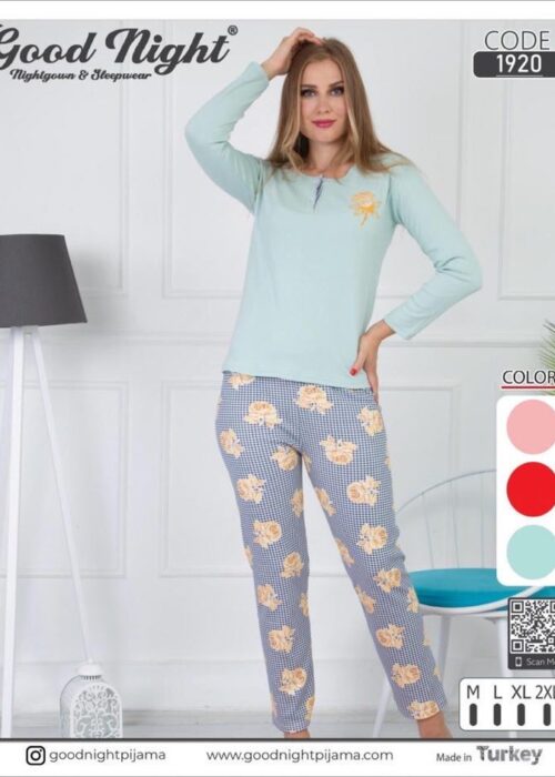 πιτζάμα σιέλ με λουλούδια